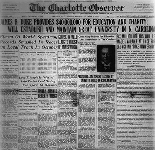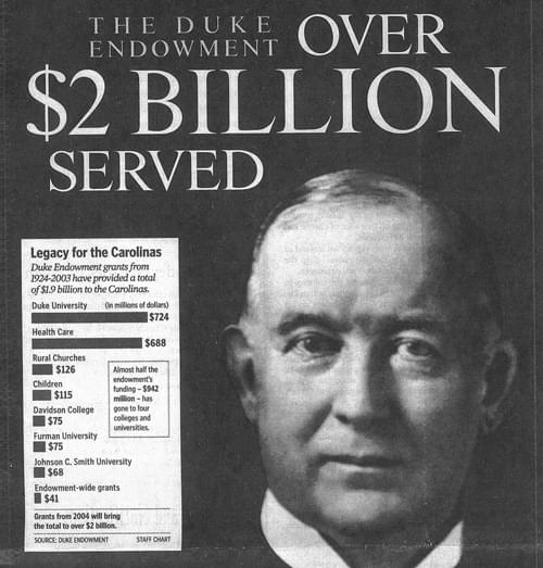 The Duke Endowment in Charlotte, North Carolina, is a private foundation established in 1924 by industrialist and philanthropist James B. Duke. We seek to fulfill his dream for the Carolinas by enriching lives and communities through children’s services, health care, higher education and rural churches. Mr. Duke’s legacy endures today in every life touched, every institution advanced and every innovation discovered.